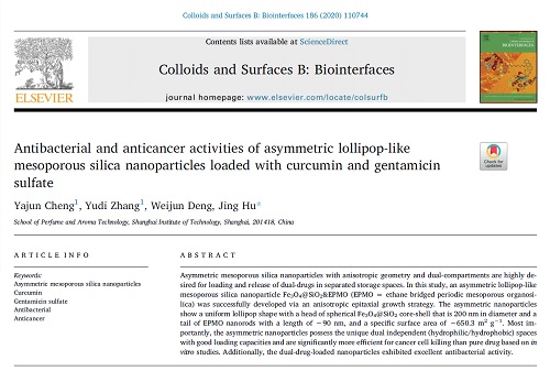 胡静教授针对天然香料可溶性差、不稳定等问题,采用新型合成技术,巧妙地设计了具有不对称结构的有机-无机二氧化硅纳米复合颗粒,实现了同步负载两种疏水和亲水香料,并对单一香料可控释放,具有良好的抗菌和抗癌效果。该研究为香料包覆技术的未来发展提供了新思路,促进了天然香料在医药和生物领域的潜在应用。该工作发表于国际著名期刊Colloids and Surface B: Biointerfaces(JCR一区,影响因子3.973)。