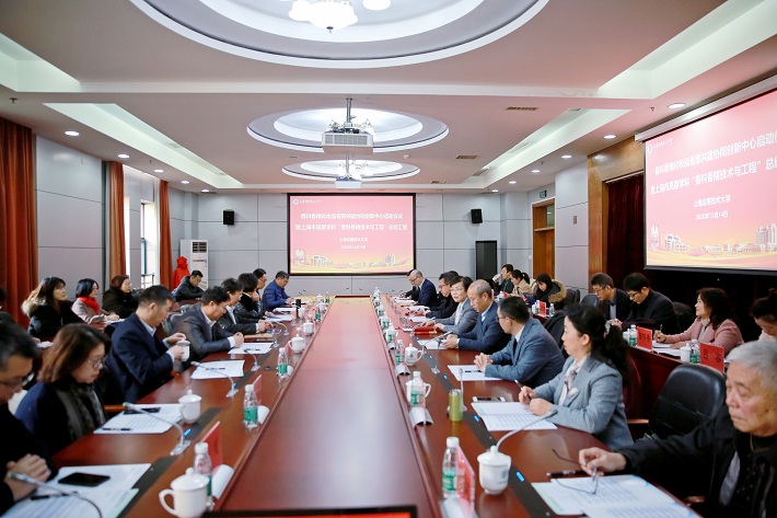 12月14日,香料香精化妆品省部共建协同创新中心启动仪式暨上海市高原学科“香料香精技术与工程”总结汇报会在校举行。校长柯勤飞出席并致辞。中国工程院院士、北京工商大学校长孙宝国教授出席,并主持召开第一次专家委员会会议。英国皇家工程院院士、英国伯明翰大学张志兵教授通过视频方式发来贺词。上海市教育委员会科技处处长许开宇、兄弟高校相关领导和企业专家出席仪式。